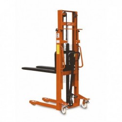Gerbeur à levée et déplacement manuel 1000kgHauteur d'élévation : 3000mm Construction robuste en acier profilé soudé, tablier guidé par galets et chaîne d