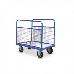 Chariot plateau galva - 2 ridelles grillagés amovibles est idéal pour transporter les charges longues. Habillage graillagée dans la longueur