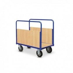 Chariot plateau galva - 2 ridelles en bois amovibles est idéal pour transporter les charges longues. Habillage bois dans la longueur