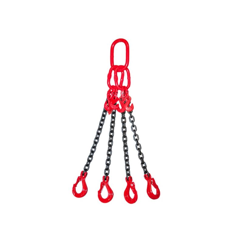 Elingue chaine 4 brins Longueur 2 M DIAM 16 MM CMU DE 17000 KG avec crochet à chape linguet simple et raccourcisseur