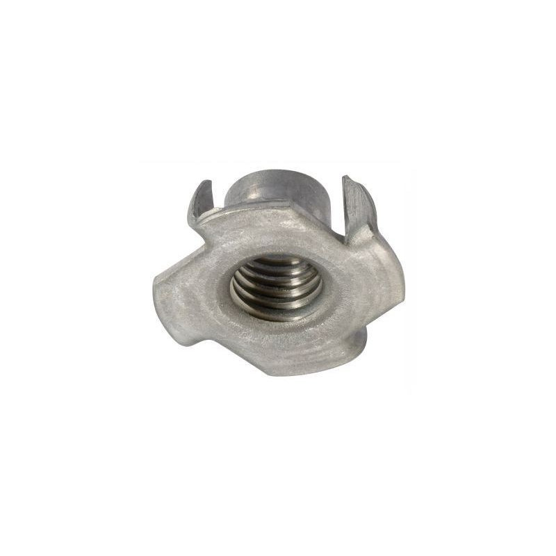 Ce produit est un écrou à griffe, il se fixe sur des parois en bois en frappant dessus. On l'appelle aussi écrou à frapper. Cet écrou est disponible pour un filetage M10 il faudra le fixer après avoir percé la profondeur désirée pour l'axe de la vis (hauteur de réglage max). Pour le perçage, il est conseillé d'utiliser une mèche de 12,5 mm pour le filetage M10