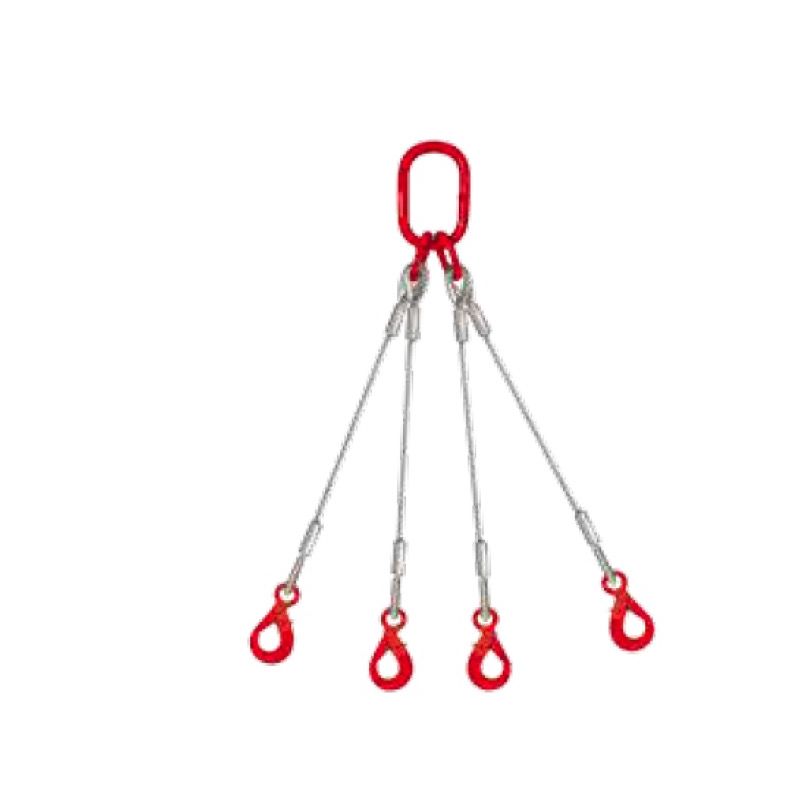 Elingue cable 4 brins Longueur 2M DIAM 8MM CMU DE 1550 KG boucles cossees manchonnees avec crochet oeil et linguet de secu