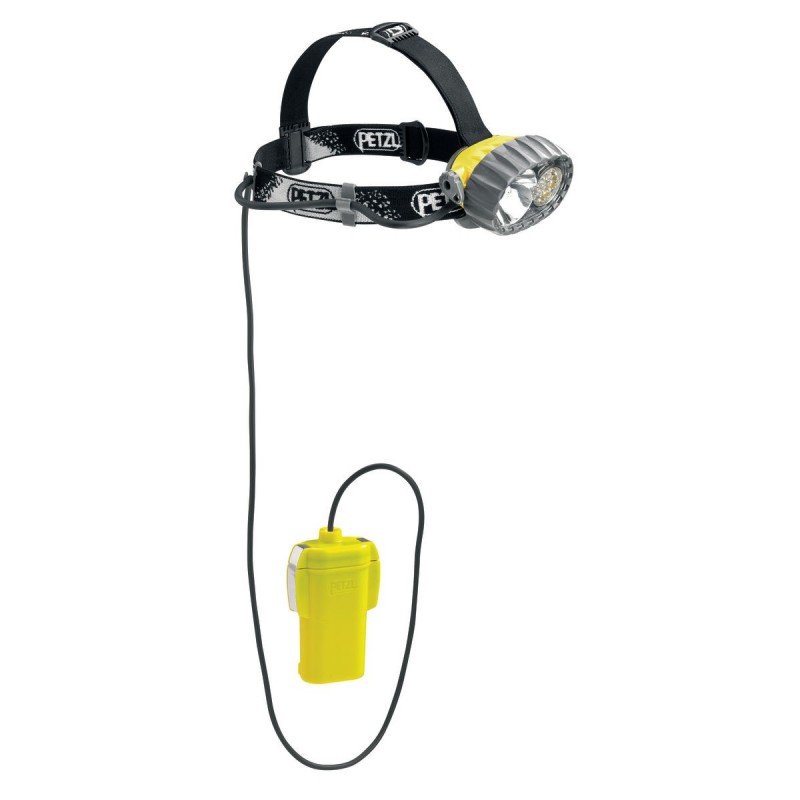 Lampe tout terrain robuste et étanche jusquà -1 mètre. Deux sources lumineuses puissantes à choisir en fonction de laction : - foyer halogène pour un éclairage focalisé longue portée avec zoom réglable, - foyer de 14 leds pour un éclairage de proximité large, avec 3 modes déclairage (maximum, optimum, économique). Éclairage de proximité avec technologie CONSTANT LIGHTING pour une grande autonomie : - foyer de 14 leds maintenant un niveau déclairage constant jusquà ce que les piles soient presque déchargées, - passage en mode éclairage de réserve lorsque les piles sont presque déchargées. Confortable et simple à utiliser : - bandeaux élastiques réglables et confortables, - interrupteur verrouillable pour éviter les mises en marche involontaires, - bloc optique orientable. Ampoule halogène de rechange dans le bloc optique de la lampe.
