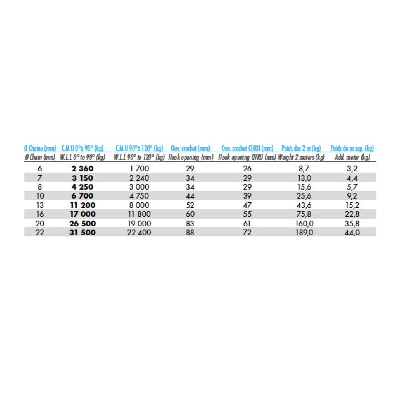 Elingue chaine 3 brins Longueur 2 M DIAM 6 MM CMU DE 2360 KG avec crochet automatique