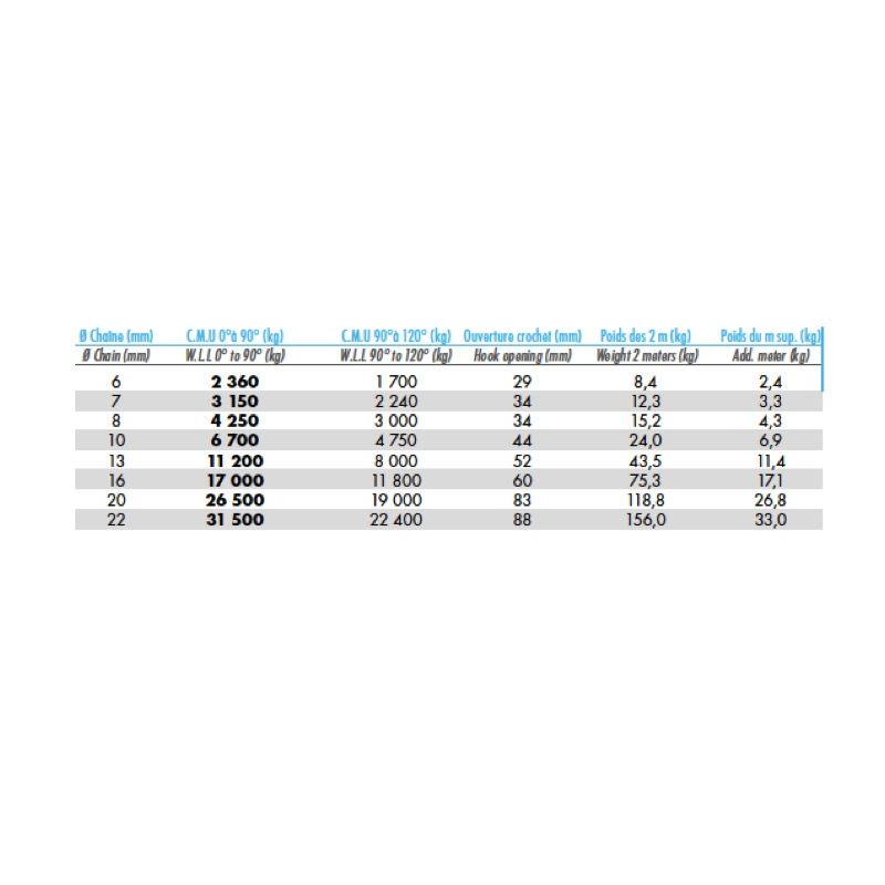 Elingue chaine 3 brins Longueur 4 M DIAM 6 MM CMU DE 2360 KG avec crochet automatique a emerillon