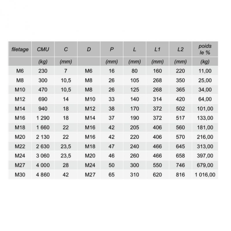 Tendeur en acier Chape/Chape